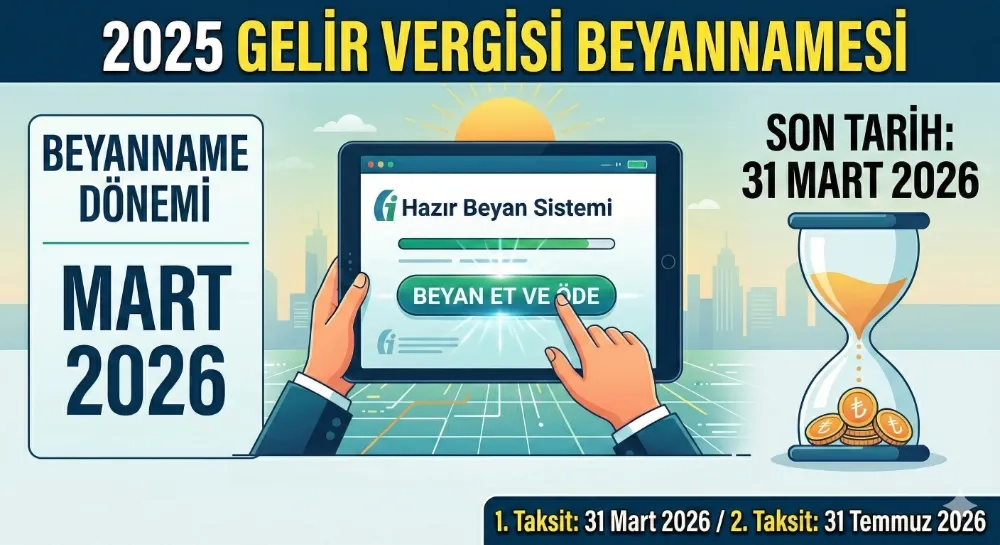 HABER / NEZİR KARAYÜN - 2025 yılında gelir elde eden milyonlarca mükellef için yıllık gelir vergisi beyannamesi dönemi başlıyor. Beyanlar mart ayı boyunca elektronik ortamda verilecek, vergiler iki taksitte ödenecek.