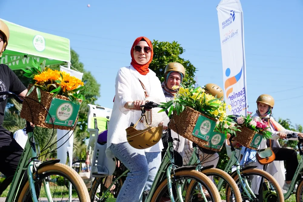 çiçekli bisikletlerle 15 Temmuz Millet Bahçesi’nde ücretsiz bahçe turu da yaptı, bol bol hatıra