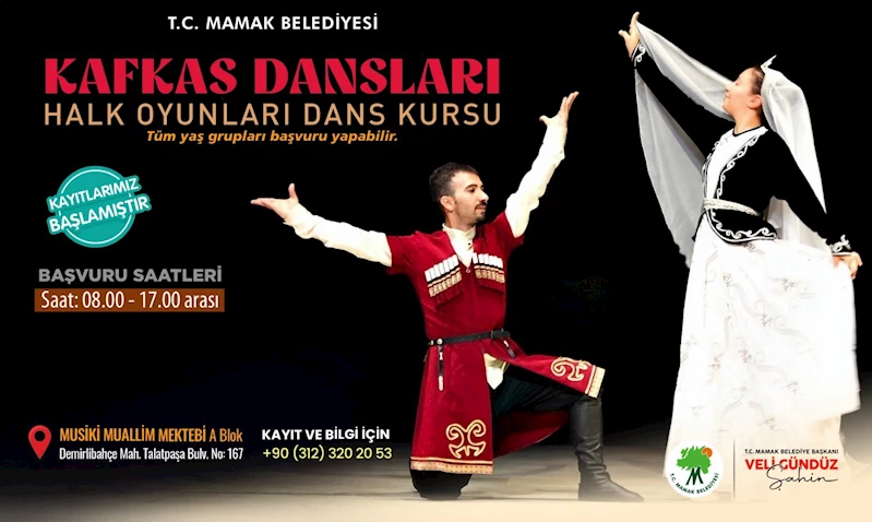 Anadolu’nun farklı yörelerine ait halk oyunları Musiki Muallim Mektebi’nde sevenleriyle buluşuyor. Alanında uzman eğitmenler eşliğinde Seğmen, Konya, Burdur gibi Anadolu’nun farklı yörelerine ait halk oyunları eğitimleri veren Mamak Belediyesi, Kafkas Halk Oyunları kurs kayıtlarını başlattı. Kayıtlar 08:00-17:00 saatleri arasında Musiki Muallim Mektebi’nde yapılacak. Pazar günleri saat 11:00’de Mamak Kültür Merkezi Halk Oyunları Salonu’nda gerçekleşecek olan Kafkas Halk Oyunları kursuna 12-40 yaş aralığındaki tüm vatandaşlarımız katılabilir. Ankara,Mamak Belediyesi belediye365.com