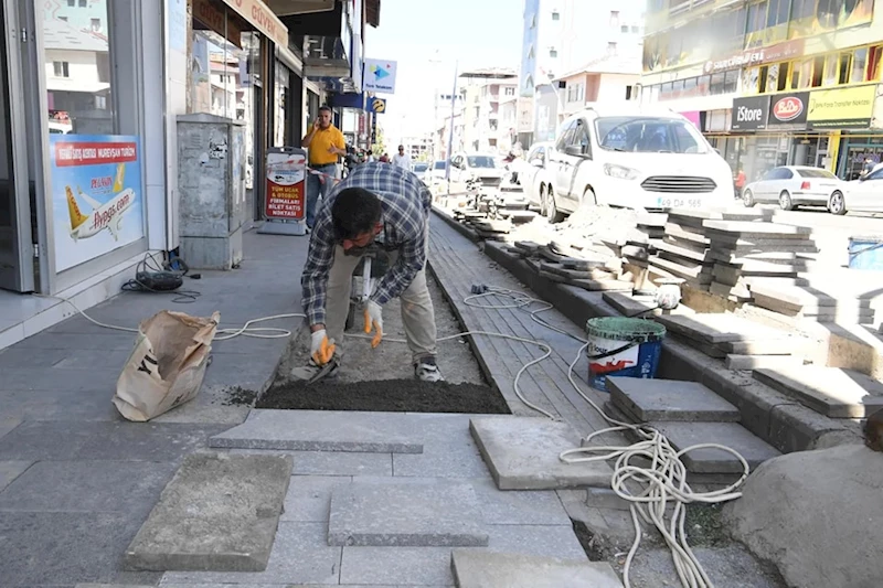 MUŞ BELEDİYESİ, KALDIRIMLARDAKİ TAHRİBATLARI ONARIYOR