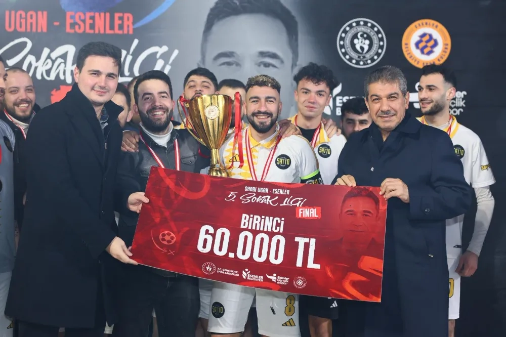 HABER/ M. MUSTAFA KARAYÜN / ESENLER - Esenler Belediyesi tarafından bu yıl beşincisi düzenlenen Sabri Ugan Esenler Sokak Ligi finali büyük bir coşkuya sahne oldu. Türkiye’nin en büyük sokak futbolu organizasyonları arasında gösterilen turnuvada Esenler Şatto, finalde Bölge Team’i mağlup ederek şampiyonluğa ulaştı. Son üç yılın finalisti olan Esenler Şatto, bu yıl da kupayı kaldırarak başarı geleneğini sürdürdü.