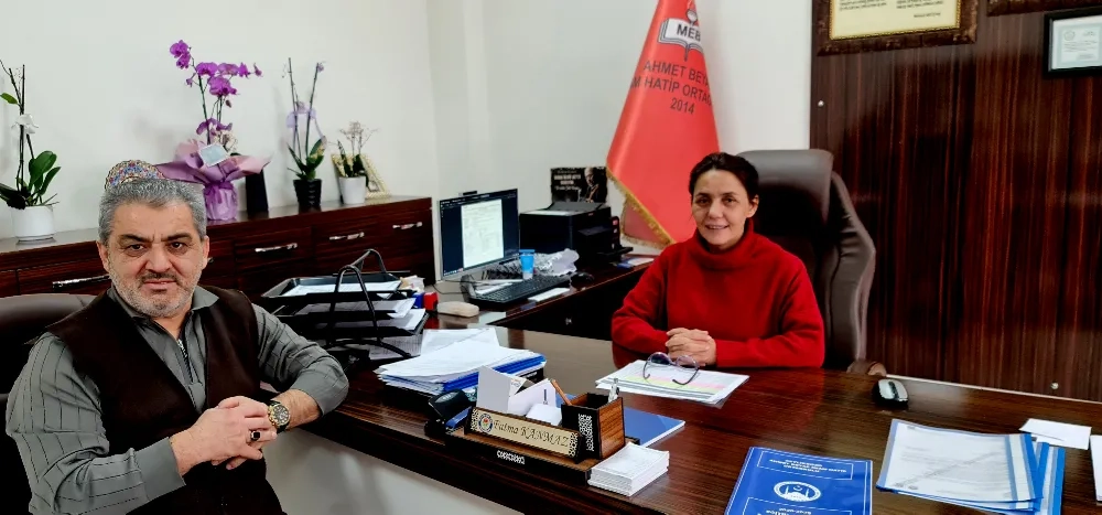 Eğitimden Haberler İmtiyaz Sahibi ve Genel Yayın Yönetmeni Nezir Karayün, okul ziyaretleri kapsamında Beylikdüzü Ahmet Beyaz İmam Hatip Ortaokulu Müdürü Fatma Kanmaz’ı makamında ziyaret etti. Samimi bir ortamda gerçekleşen görüşmede okulun eğitim anlayışı, yürütülen projeler ve öğrencilerin gelişimine yönelik çalışmalar ele alındı.